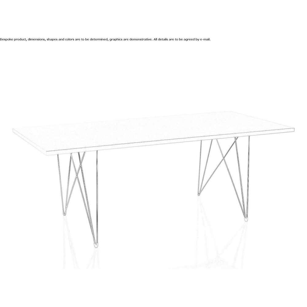 Tables. Material: frame made of chrome-plated steel bar or painted with epoxy resin. Tabletop made of painted MDF board.