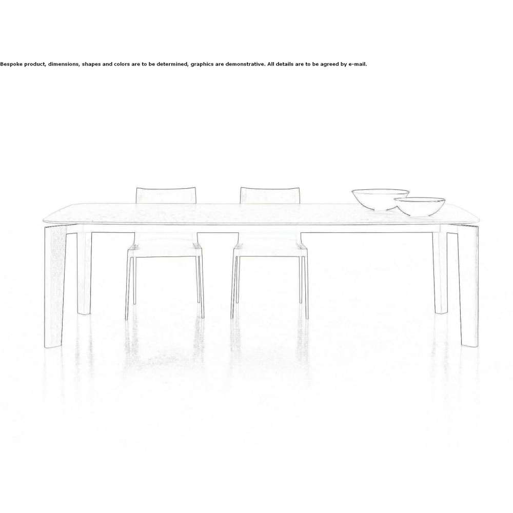 With the Oskar table, Vincent Van Duysen enters a more architectural tradition of furnishing design, taking into account the experiences of the masters and presenting a work that can dialogue with the surrounding space. The relationship of the tabletop to the legs based on a certain distance, the frame structure that "catches" the legs, the curves of the tabletops, the tapered edges and the smoothed legs: all elements that require considerable complexity in design, but with an effect of great purity. Proportions, interplay with volumes and materials create the harmony of the table. Among the materials, we can distinguish a cathedral glass top with an irregular surface and a light greenish color, which can be an alternative to white Statuarietto marble, black Marquinia marble, natural wood or lacquered finishes. The legs are made of natural or lacquered wood, also in the new shiny emerald green version, only available in combination with the cathedral glass top. Oskar comes in three sizes: two rectangular and one square.
