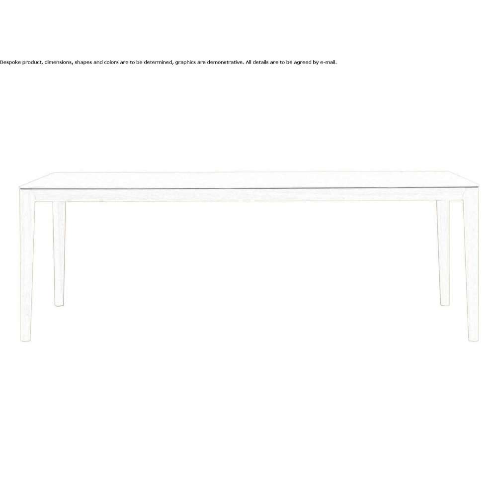 The Smith is long and lean, with a beautifully shaped wooden frame. Behind the apparent simplicity of the table lies a complex internal structure that includes a steel subframe. The table is universal due to the top that rests lightly on the frame, allowing the use of glass or wood, with a subtle shadow line detail separating the two elements.