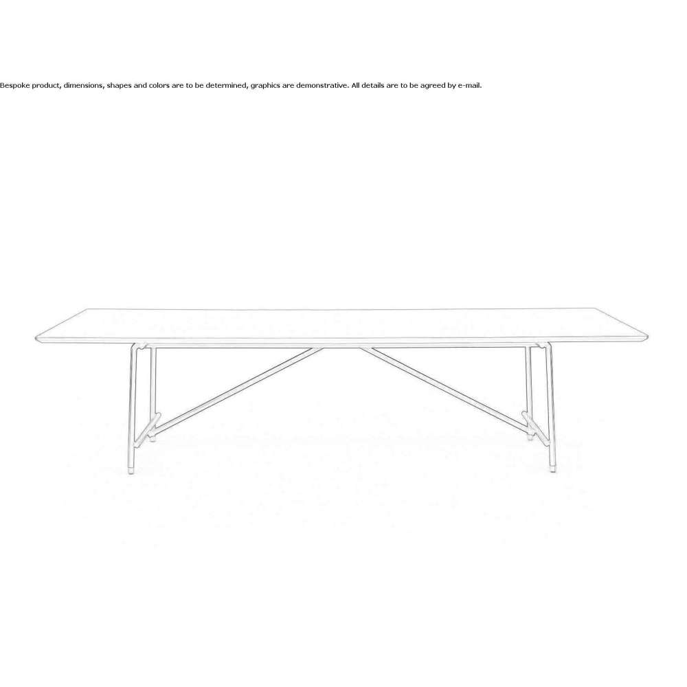 The metal structure of the Any Day dining table has clean lines and is available in a variety of finishes, while the tops are available in Canaletto walnut or ash veneer; finished with glossy varnish in a palette of sophisticated shades; or in various types of luxury marble.