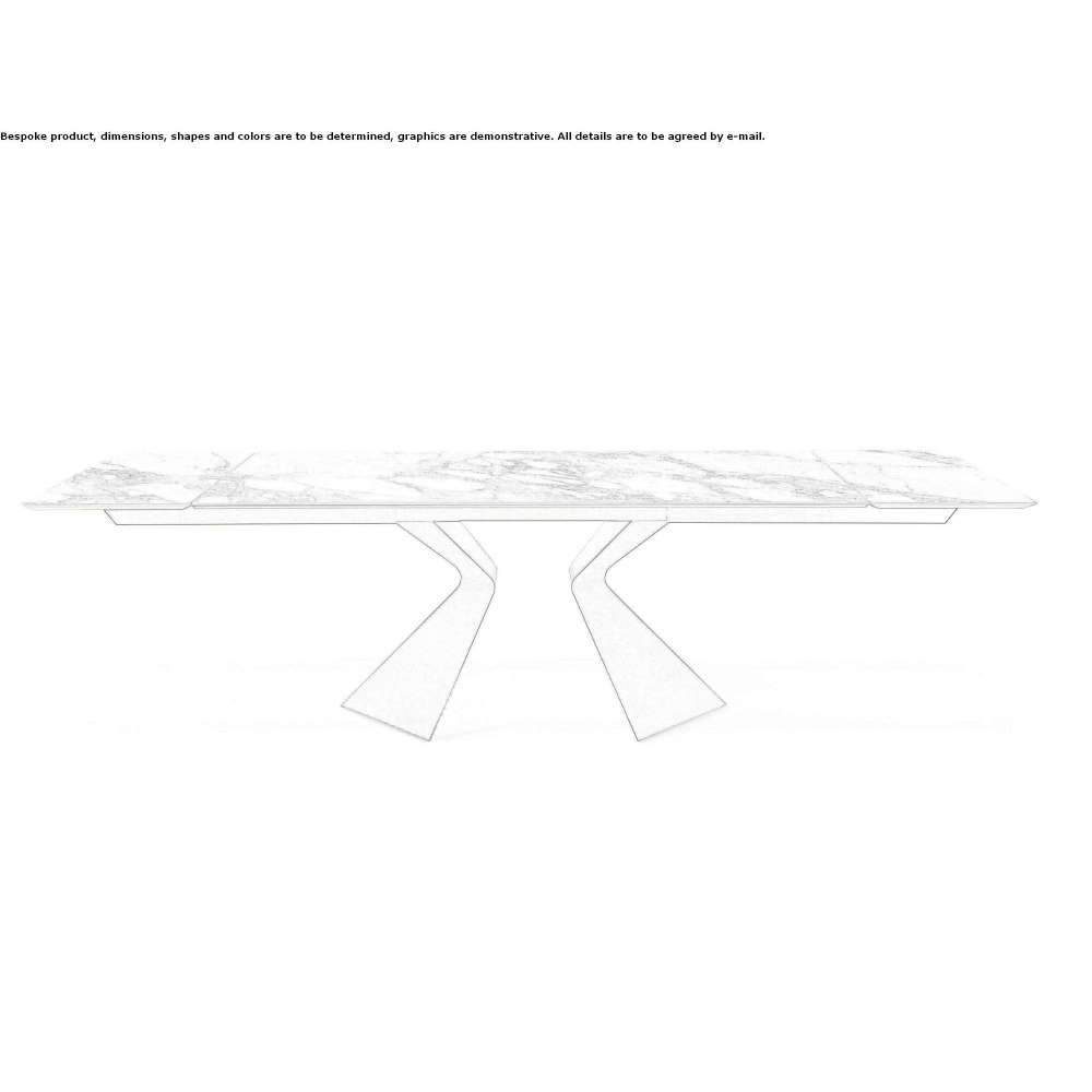 The strong, sloping base profile, which resembles the bow of a ship, creates a dynamic, malleable presence that becomes the centerpiece of the room furnishings, while also optimizing the seating space. The multiple finishes available for the base and top allow for full customization without compromising the purity of the design and instead enhancing the artistic value. The tabletop is produced in various sizes and is available in fixed and extendable versions. In the second version, two independent side extensions allow you to easily increase the length of the surface, maintaining excellent stability and solidity, without sacrificing a clean cut and the desired aesthetics.