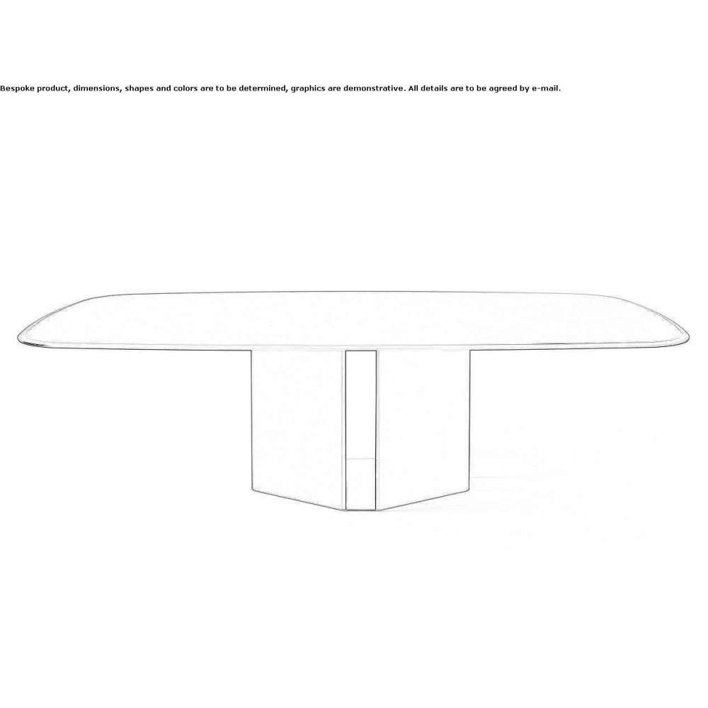 Eyl is a table with a 15 mm thick painted glass top, available in light or satin versions according to the samples. Glass top with a 3 cm bevelled edge. Wooden base covered with painted, 6 mm thick tempered glass. Metal parts in bright stainless steel "Supermirror".