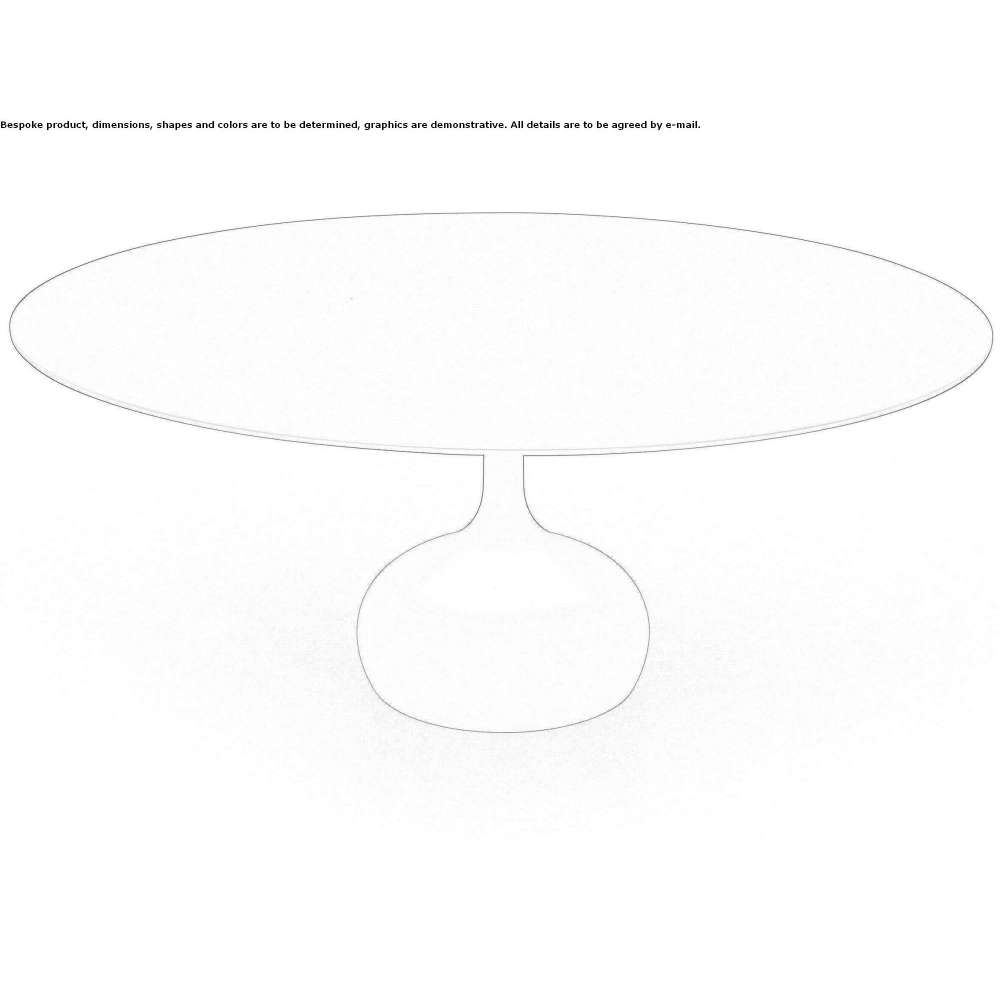 The Saen is an inverted cup that rests most of its weight directly on the floor, eliminating the need for a low center of gravity. The base is made of compact, rigid polyurethane, a material with high performance parameters and advanced technical and aesthetic properties. This technopolymer actually makes it possible to obtain a perfectly clean and even surface, while maintaining the concrete silhouette of the original design. On a leg finished with structural paint there are tops of various shapes in MDF or lacquered wood in various finishes.