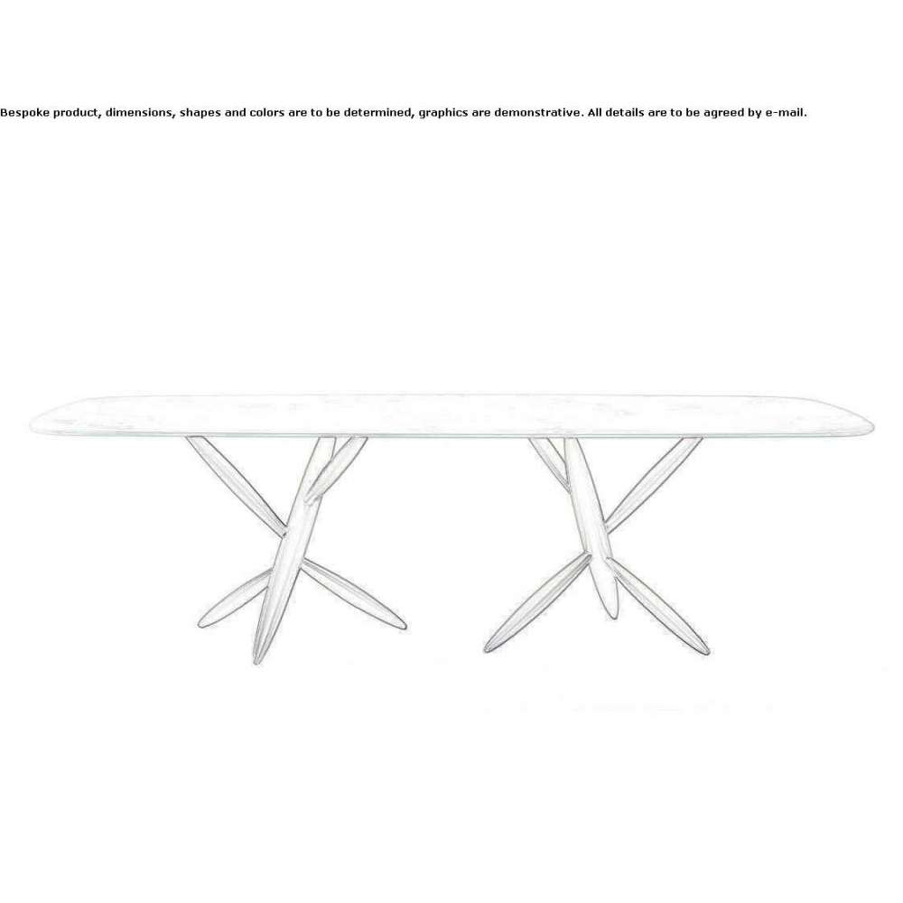 PITTO 72 is a dining table with a base made of composite material in a bronze finish. Top made of glass, very clear glass, MarmoReflex or LegnoReflex. Bevel wood top in a brown finish with a Marmoreflex or Legnoreflex cover. Tabletop made of chamfered wood in the color of Canaletto walnut or Canaletto Henné.