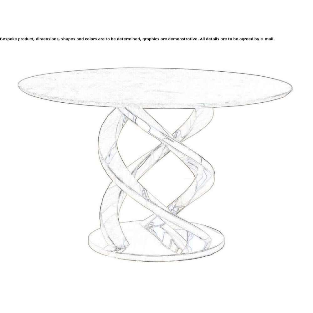 This is a dining room version with a Dark Emperador marble top with a diameter of 120 cm, but on special order it is possible to make marble with a diameter of up to 150 cm.