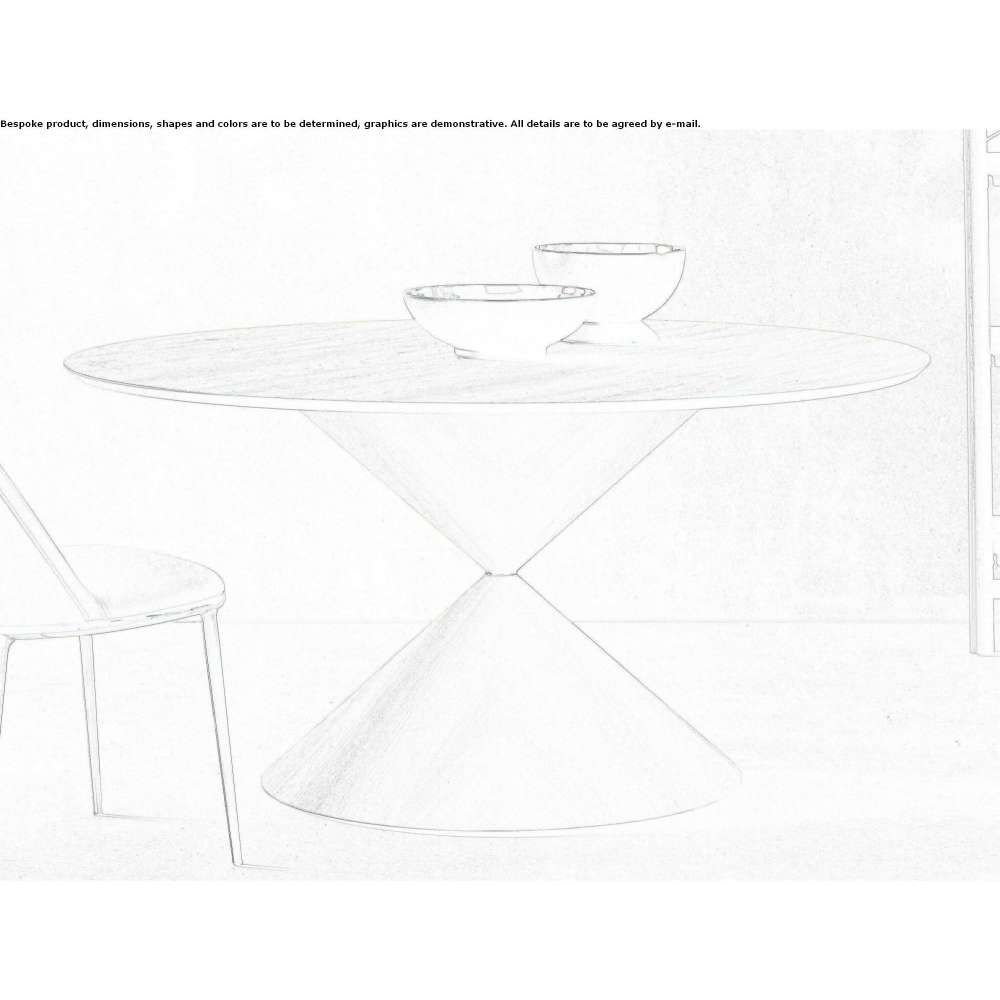 Clessidra is a fixed round table with a solid or two-tone steel base. Wooden version available. Top made of crystal ceramics or wood.