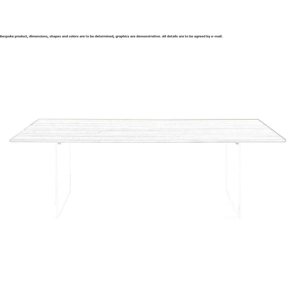 Sospeso B-627 is a rectangular table with a wooden top and glass legs. The illusion combines with the substance of traditional solid wood processing. The Sospeso table collection is created by the experienced hands and vision of our craftsmen. The linear and formal design of the wooden tabletop rests on legs of ultra-clear glass with visible joints that give a floating effect.
