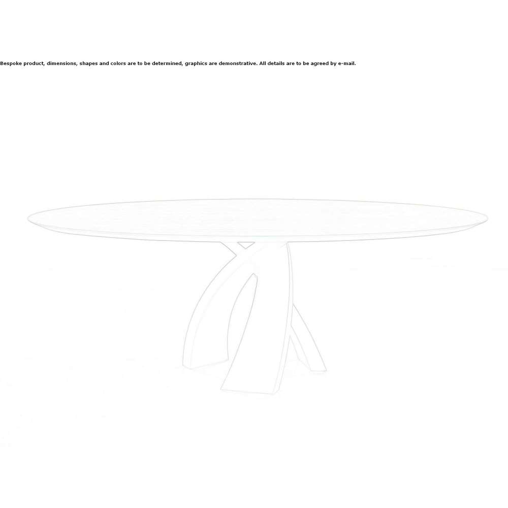 Wooden ellipse made of tempered glass, electrically welded with UV rays to a steel plate; the whole thing was delicately placed on bent, varnished metal legs, thanks to which great aesthetic values were achieved. With Eliseo, the dining room was born, extremely refined, available in a three-color version or with a double base.