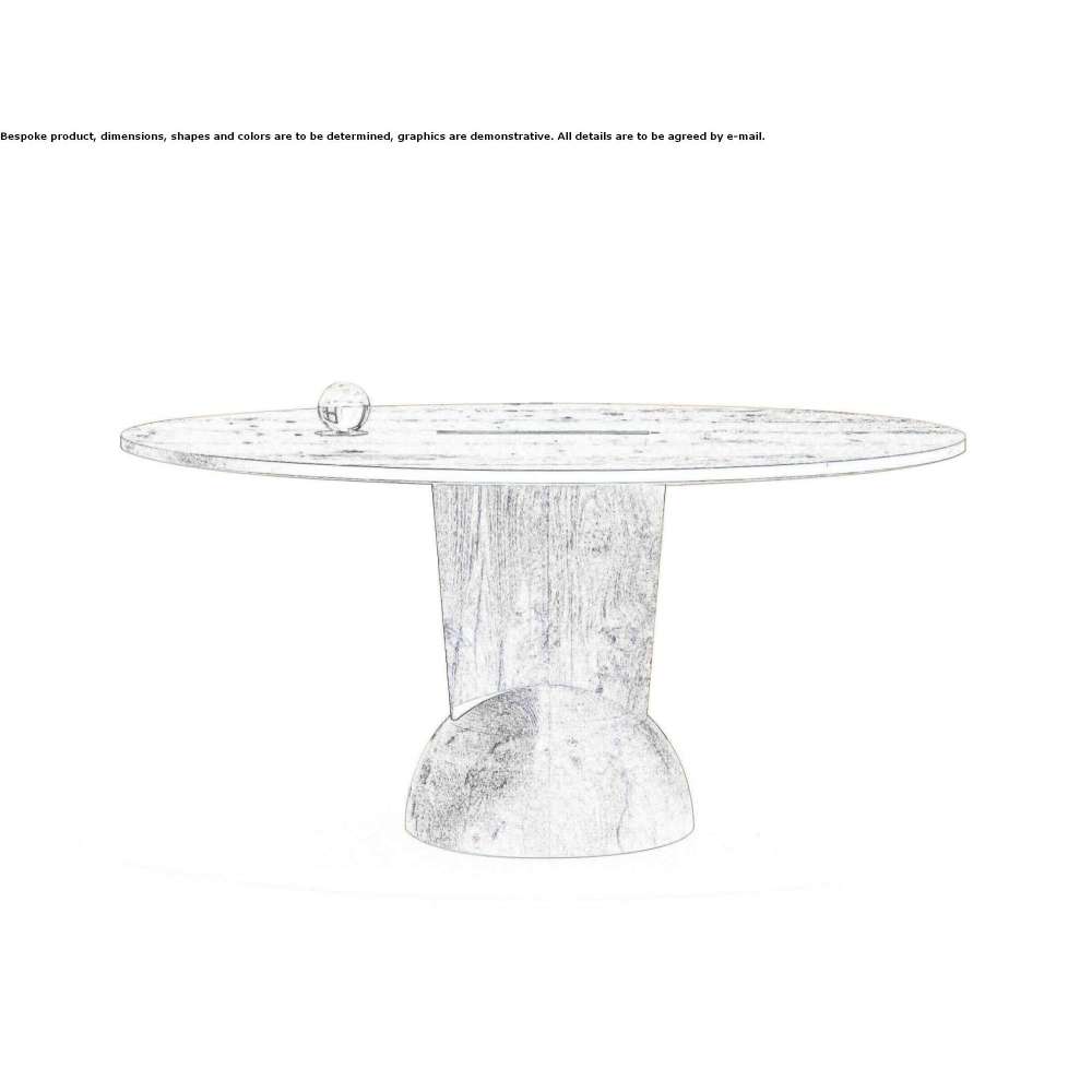 The base is composed of eight oak wood elements and is the result of a process turning, which results in a hemisphere supporting the base, to which a stele supporting the table top is attached.