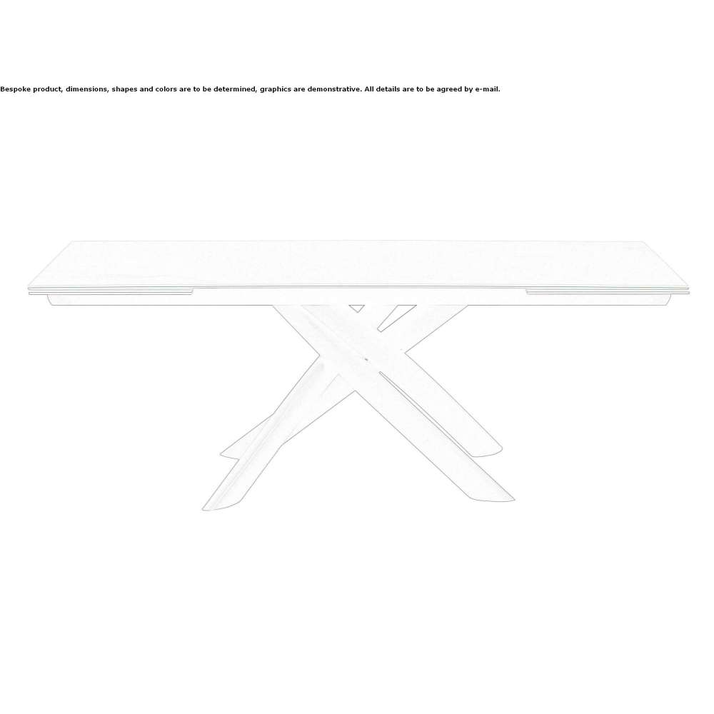 Style is the hallmark of this new and exclusive table, which stands out for its distinct aesthetic, unicum, which combines the interwoven shapes of a sumptuous base with the refined design of porcelain stoneware or glass ceramic tops.