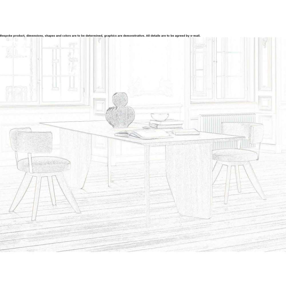 Tabletop: Made of solid glued and laminated wood, tabletop thickness: 2.8 cm. The edges of the table are reduced to 0.8 cm.