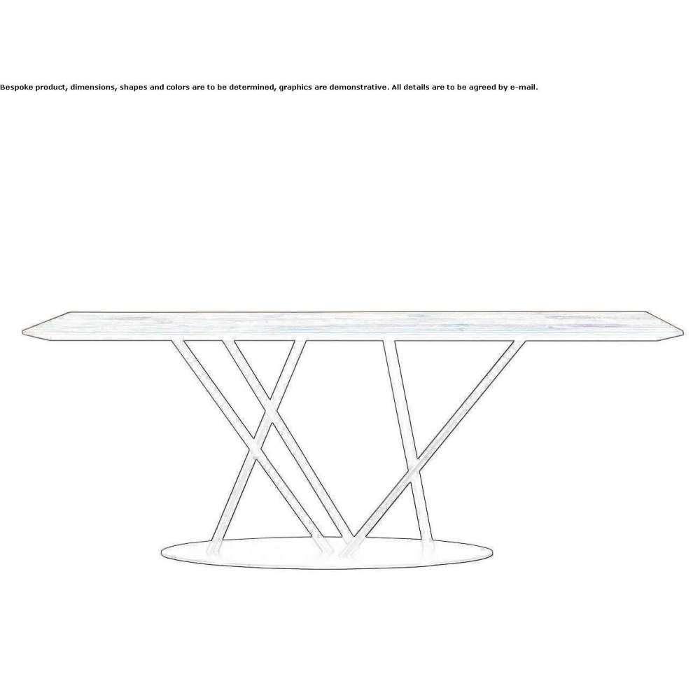 Asymmetry and harmony are reconciled in TUBE", a table with a tubular steel base characterized by sloping elements on which rests a rectangular top, available in wood, ceramic or glass. The scenic presence of the base adds a captivating accent to the room.