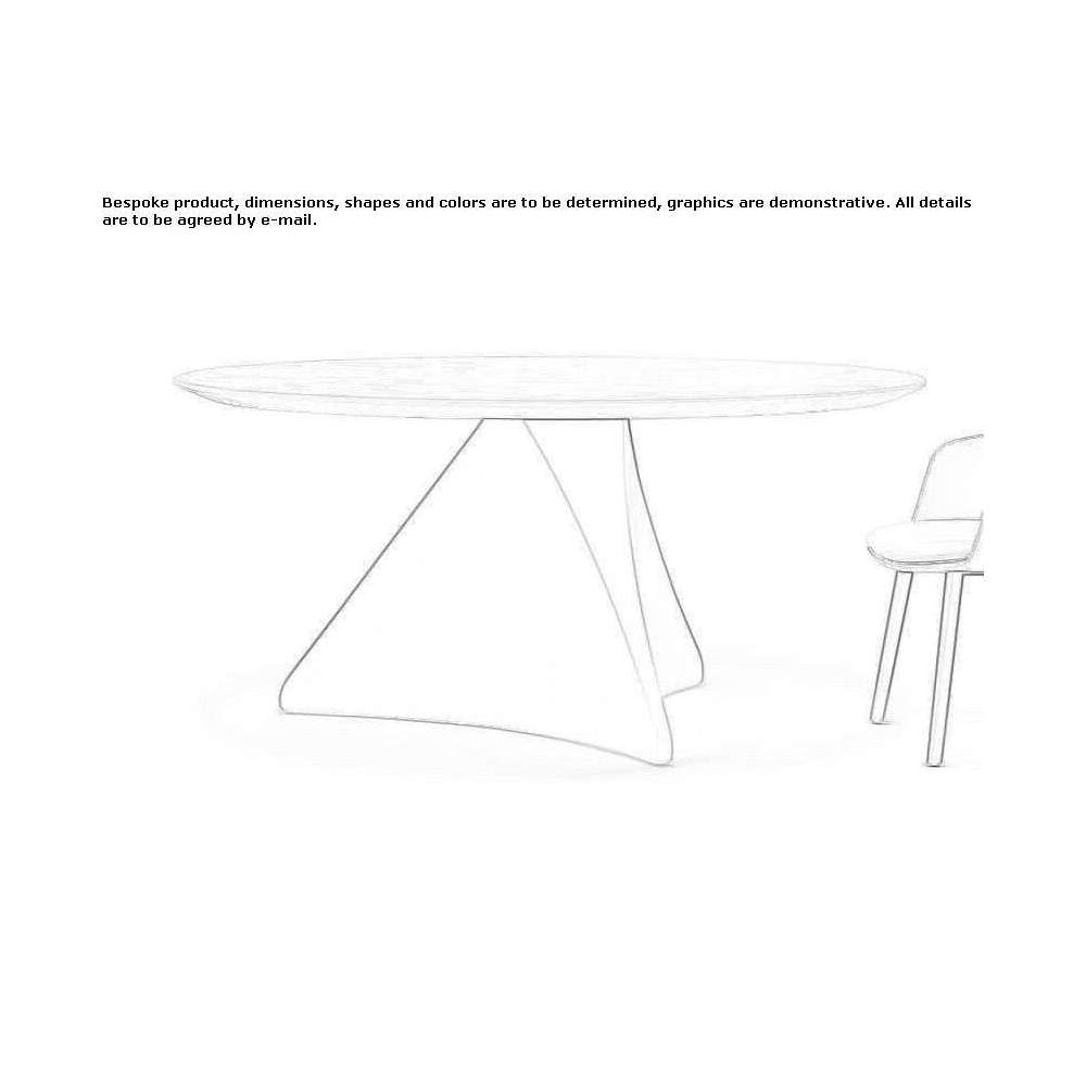Designed by the Italian design studio Favaretto & Partners, the Spin collection seeks a balance between natural beauty and industrial technology. Inspired by organic architecture and breathtaking canyons, the table bases attract attention with striking, sculpted curves. A variety of countertop materials and primary color combinations can add a modern character to any room. A lazy Susan on a round table adds additional functionality and convenience to dining.
