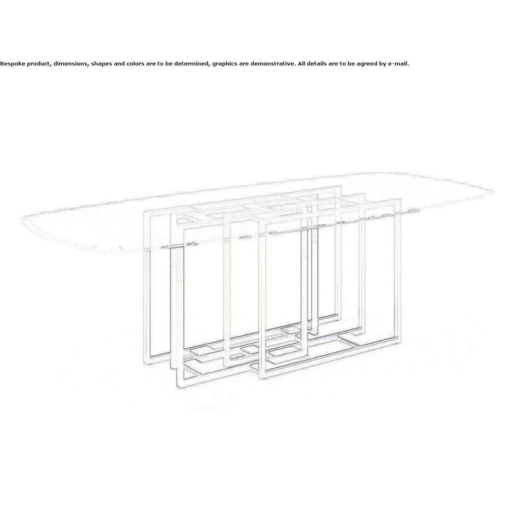 The Dorian table is perfect for the dining room, with a modern and abstract design. It is made up of a series of metal frames of various sizes, moved and connected, almost by accident, with fragments of marble, forming the basis for a cut crystal top. Like all Borzalino products, it can be available in a variety of sizes and materials, offering unlimited possibilities for composition and personalization thanks to metal finishes and marble inserts.