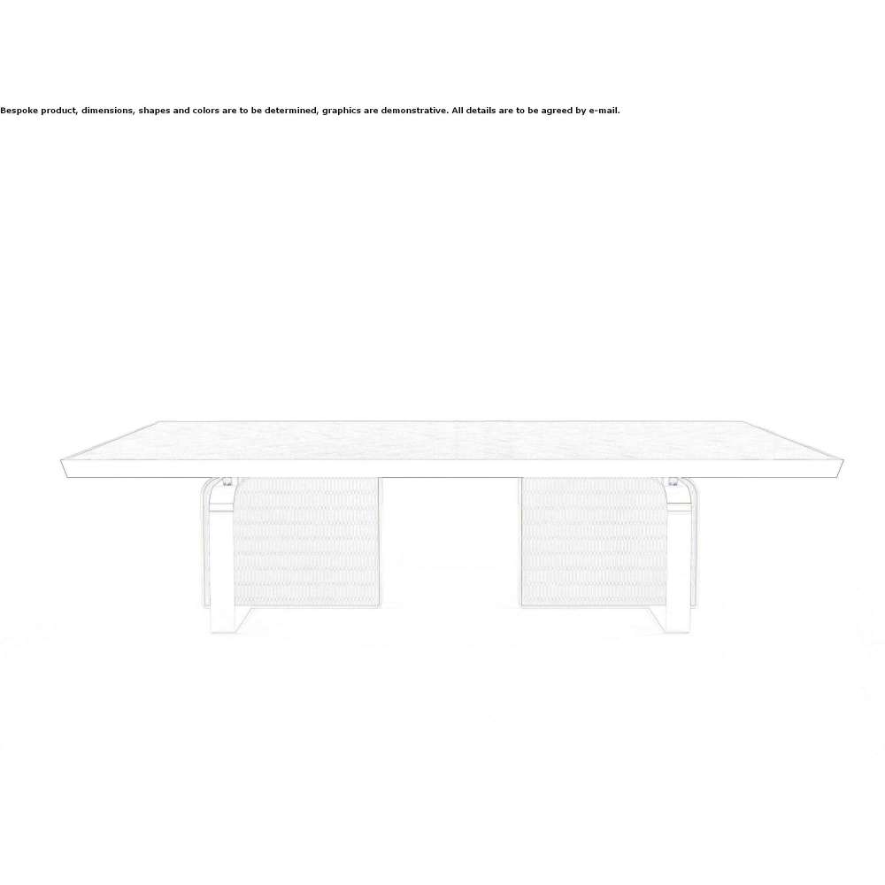 Millenium is a dining table with a metal and varnished wood frame. Quilted leather base. Tabletop available in Makassar ebony veneer.