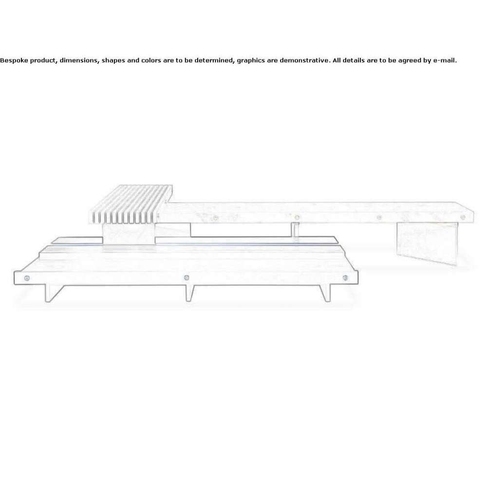 Legs made of marble coated with waterproof protective oil or made of ash stained dark gray, connected to the tabletop with satin brass connections. Tabletop made of 2 cm thick marble or dark gray ash stained, 6 cm high, connected by satin brass tie beams.