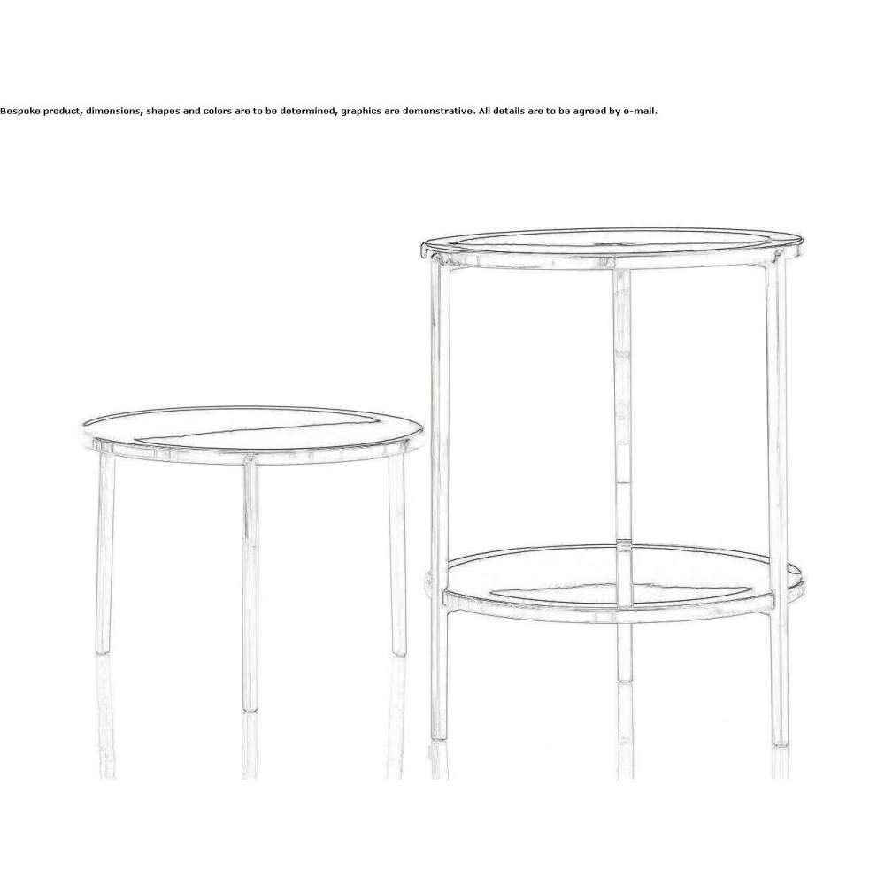 Low tables. Materials: polished cast aluminum frame. Polished aluminum tabletop.
