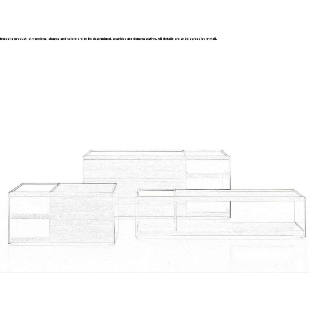 Multifunctional tables inspired, according to the designer, by a painting by Piet Mondrian and sculptures by Donald Judd, which skillfully combine various materials (wood and metal) and satin and shiny colors. The individual units, which can be combined or placed next to each other, play with materials and textures: natural or varnished wood and very thick sheet metal combine according to geometric principles, without losing softness and warmth. The collection, which already consists of three different elements, now welcomes a new module offering a new composition design (dimensions 140x150x37 high cm) with the possibility of access to the lowest surface from all four sides.