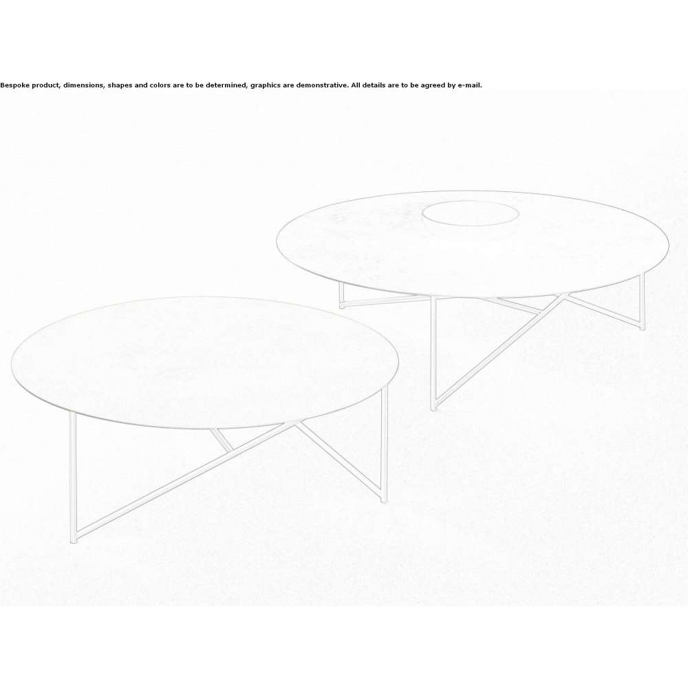 A round-top coffee table, available in two various sizes, with or without a metal central bowl.