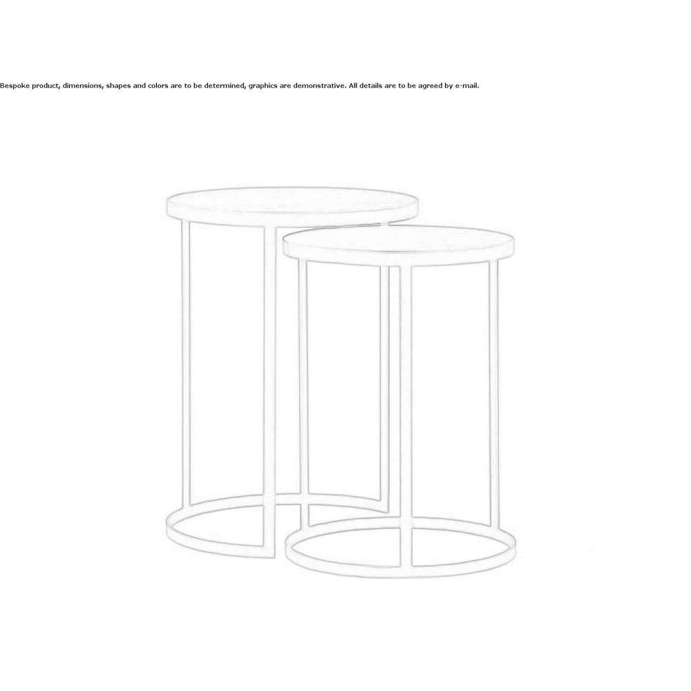 A pair of intersecting side tables providing maximum functionality without sacrificing design. Brushed bronze and wood countertops in our chosen finishes.