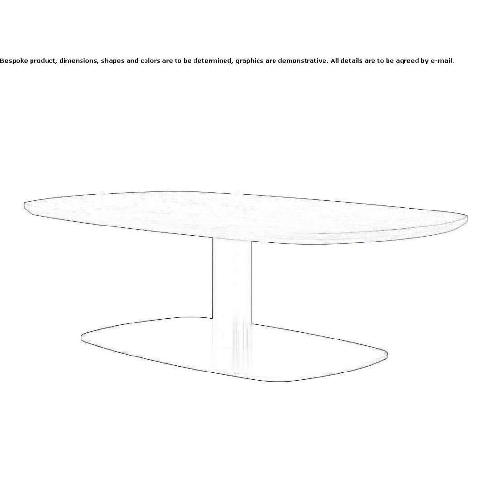 The Toffee series, table and coffee table, has a rounded veneered wood top that adds a soft touch. The black stand and the sheet metal base underneath it fit perfectly into the overall minimalist look.