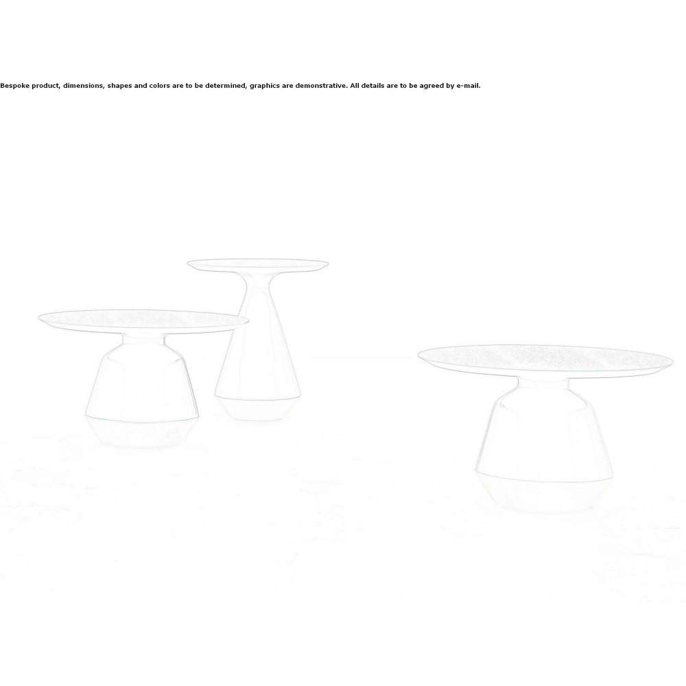 These are valuable and extremely elegant coffee tables that enrich the surroundings. Two different sizes are available, with ceramic bases and wood-clad MDF tops. Different colors, combined to create the perfect combination: purple and white, glossy or matte; white and green sage; shiny white and black combined with gold.