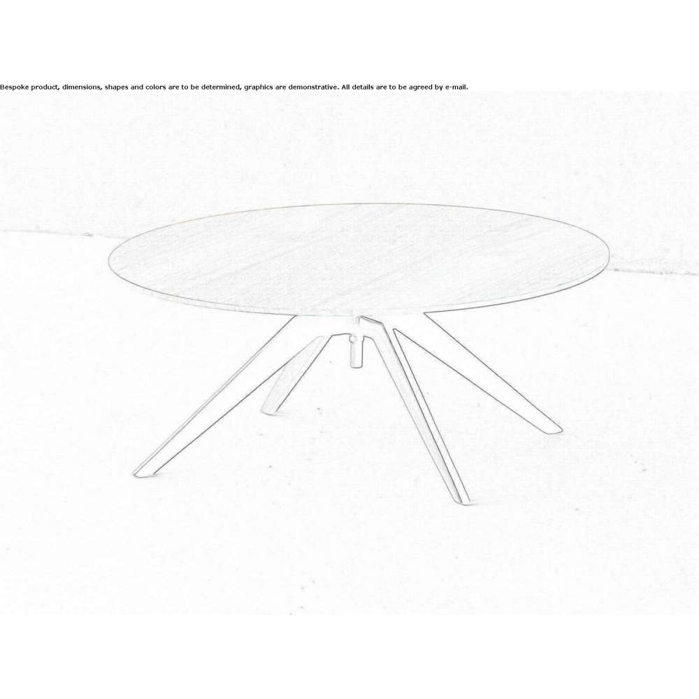 Diamerisma is a low coffee table, perfect for placing together with Solinas. The warmth and natural textures of the table contrast with the layout of the Solinas marble top. The height of the table top can be adjusted. Table top with details of the edge of an airplane wing. Cast aluminum base.