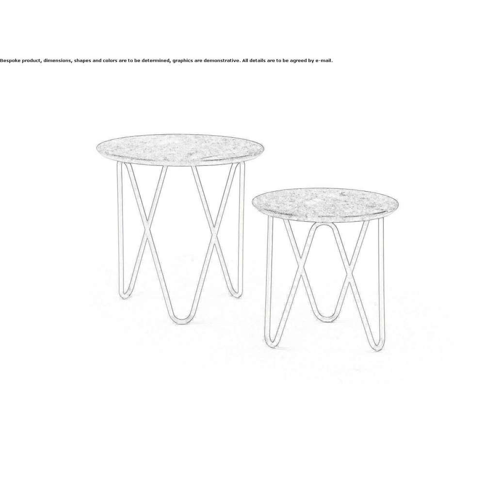 collection of coffee tables in two different sizes and heights, characterized by an original metal base and a marble or glass top, available in various finishes.