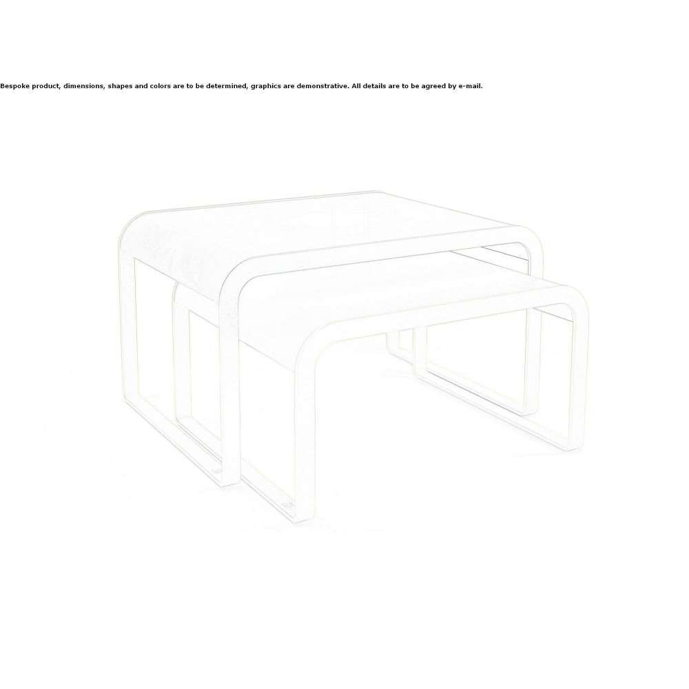 Dea Twin Set is a pair of coffee tables with a metal structure and a satin gold finish. The top of the large table is made of walnut feathers; leather for a small table.