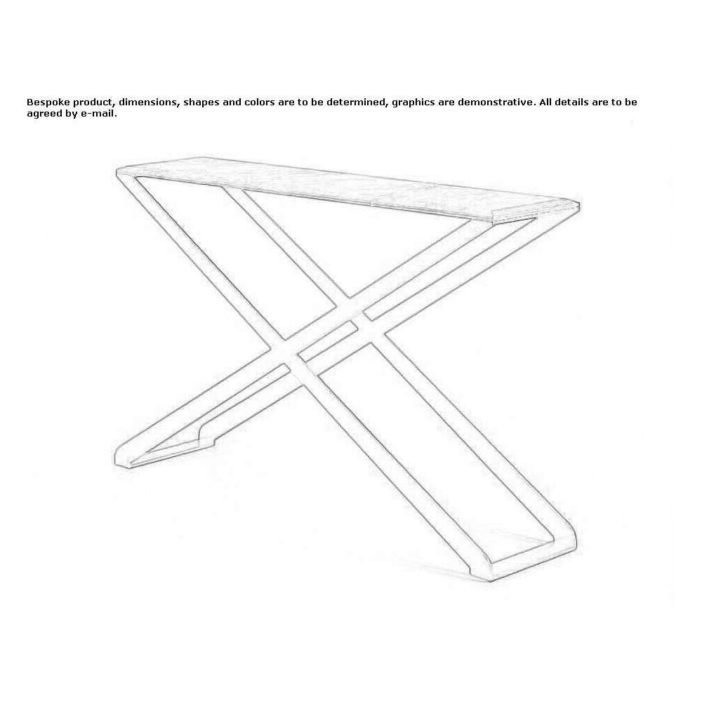 Crossover is a console table with an X-shaped structure, made of laser-cut steel. Marble countertop, 20 mm thick.
