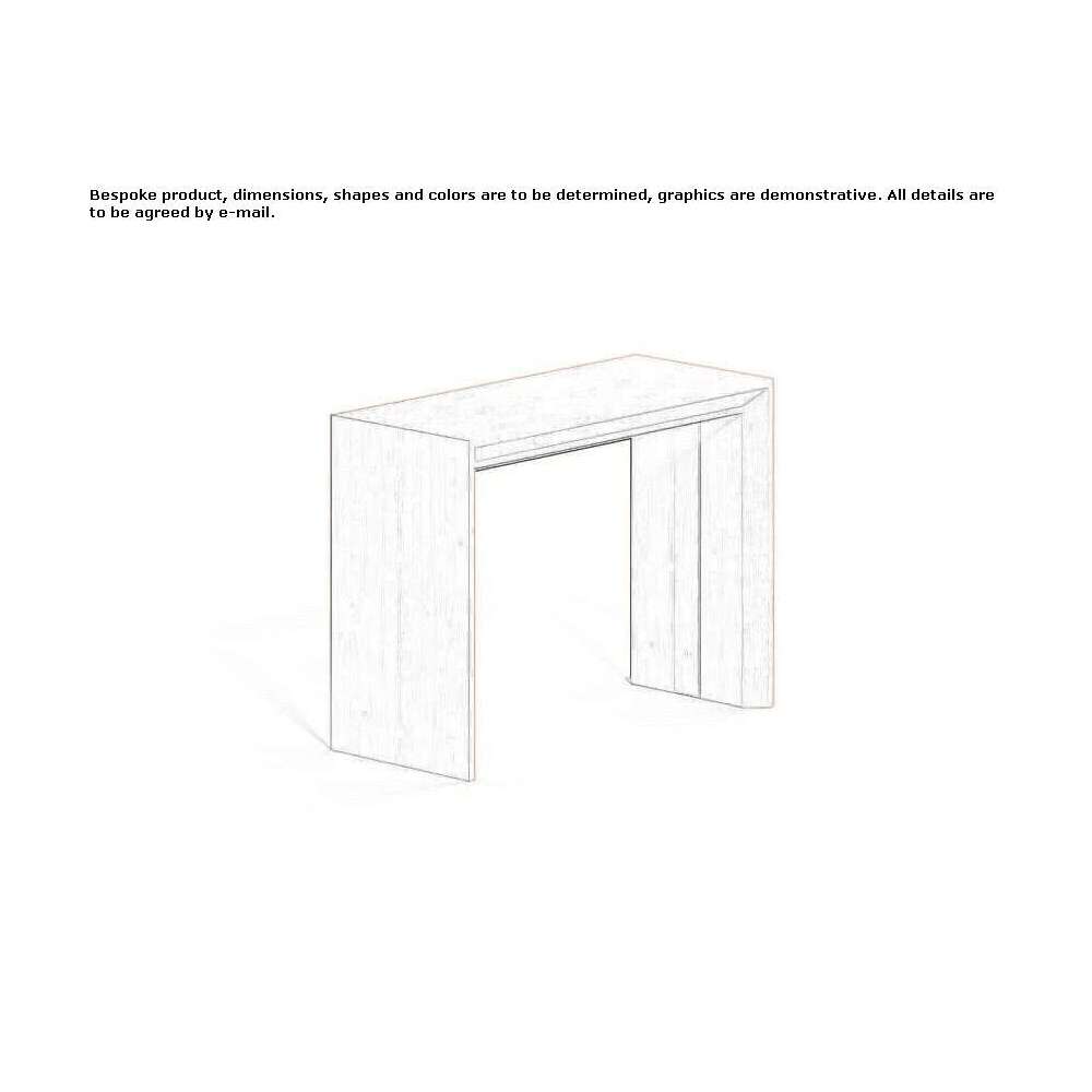 Golia is a minimal console but with a versatile personality, with wooden tops, legs and extensions, a telescopic mechanism in aluminum and equipped with 5 external extensions of 50 cm each, lacquered in the same color. The central swivel leg has a dual function: it supports the tabletop when the console is open to provide additional seating for all guests.