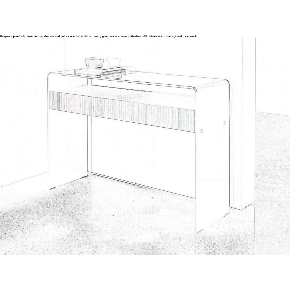 Bridge is a console made of curved, very light glass, one or two-color, smoked or lacquered, with various finishes.