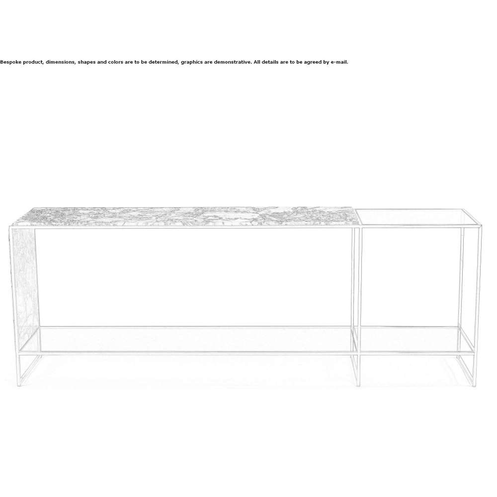 The Mondrian console was created as a result of reflection on the strength of the natural material, marble. The structure has been reduced to a minimum, allowing the stone to reveal all its beauty and intrinsic value. Marble is combined with glass to discreetly emphasize its striking appearance. The tabletop material continues from the side, triggering unexpected and original perspectives thanks to its unique, seemingly simple linear structure. The console is made of marble and glass, supported by a steel frame.