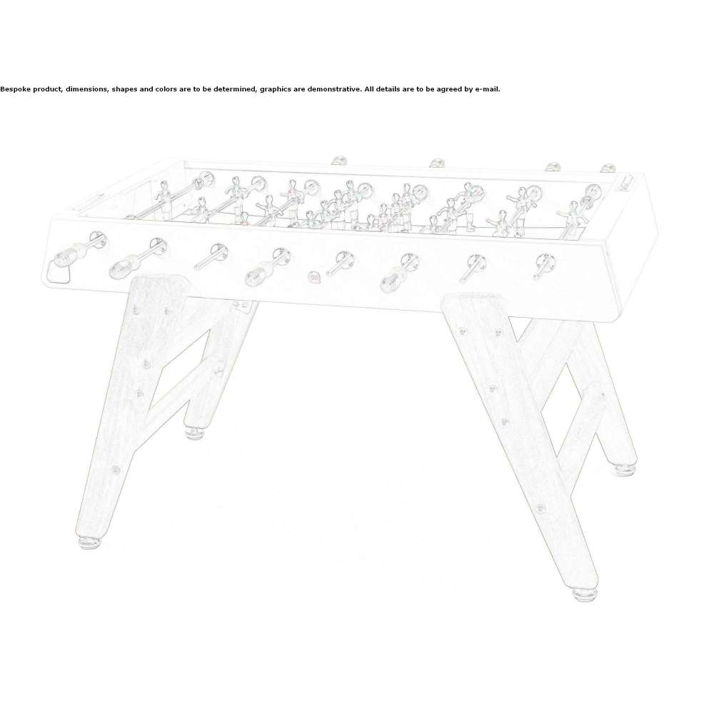 Each color (white, black, green and grey-inox) is available in standard assemblies. However, the RS3 Wood can be customized. You can choose your favorite teams, lineup (3-3-4 or 2-5-3) and pitch color. You can decide whether players should have their legs together or both legs together. You can have male, female or mixed teams players and you can choose their skin color. You can even have a logo.