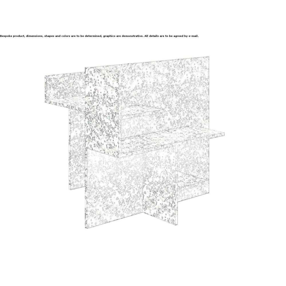 The Radicàl Fake desks, available in two heights, are equipped with built-in bookshelves, formed by the intersection of various linear elements that create playful and unexpected perspectives .