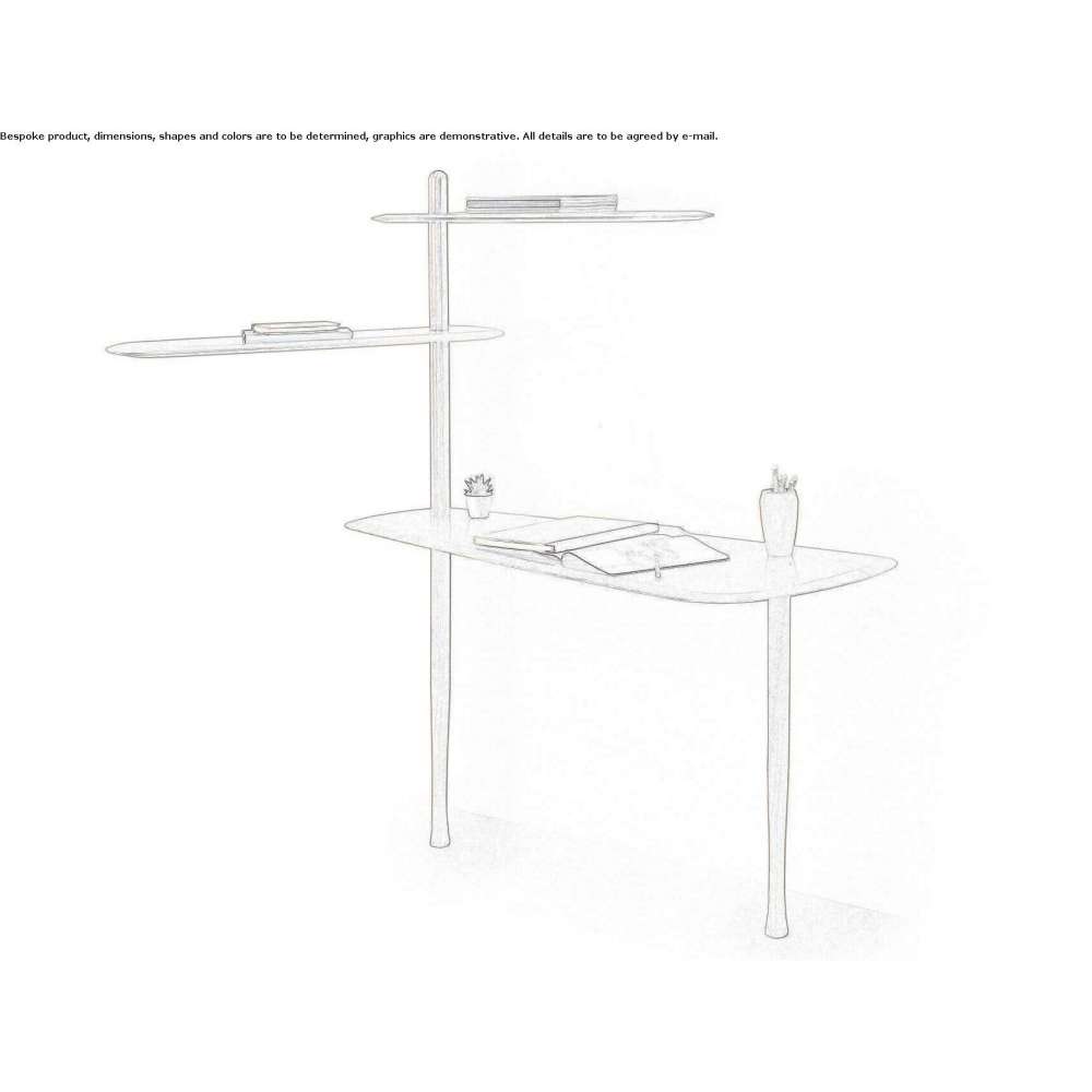 UNICA is a walnut desk with a shelf. A stylish and complete minimalist desk. It reduces its elements to the essential, remaining only on two legs. One of them lifts and contains two practical rotating shelves. A table attached to the wall becomes an ideal place of inspiration both at home and in a hotel room.