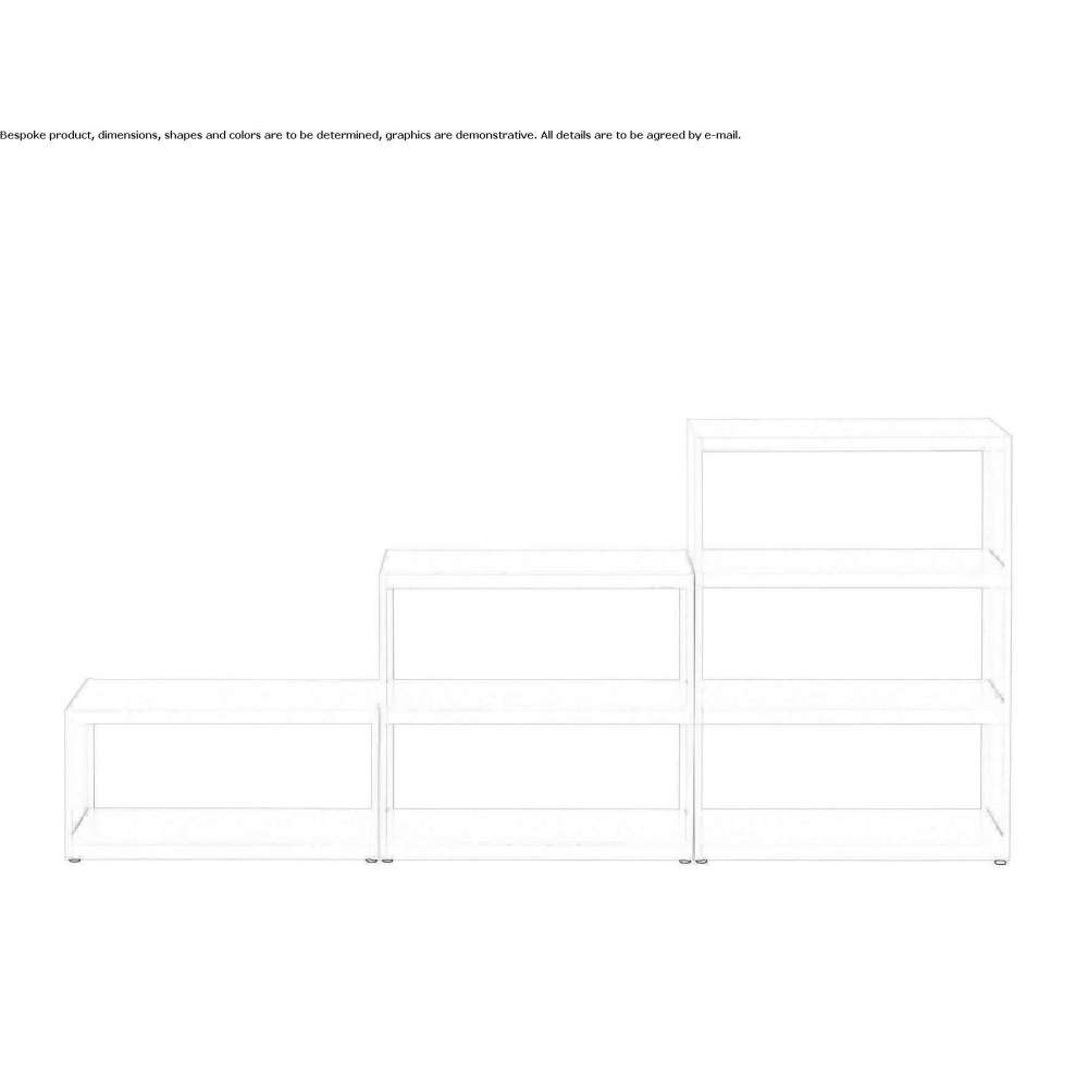 STACK is a highly functional shelving system with inherent architectural quality. Plates and side panels made of sheet metal can be assembled into a rigid lattice structure ensuring stability and strength. Modular dimensions are defined by standardized everyday objects and the requirements of office environments. The pieces are screwed together at mounting points invisible from the outside, giving the shelf an industrial and minimalist aesthetic.