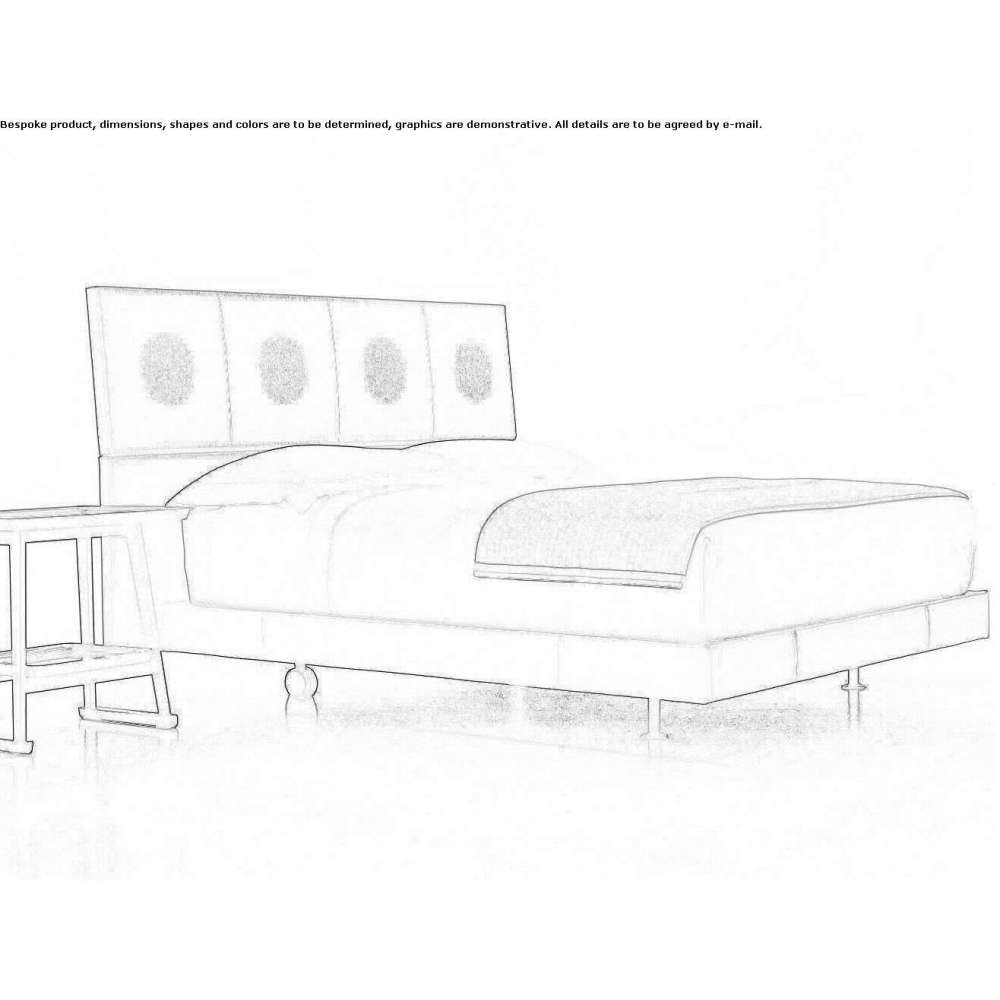 It has the prestige of leather beds that express elegance in a minimalist design. The headrest (mounted to the wall at different heights) consists of two panels. The top panel is slightly inclined and has a decorative element that softens the basic design. A circular lace motif repeated four times, in matching tones or contrast, accompanies the blanket stitch around the upper perimeter of the headboard. These decorations refer to the tradition that made Cantù famous for its handmade lace, when "bisetta" was the word (in the local dialect) for the type of lace used by Erik.