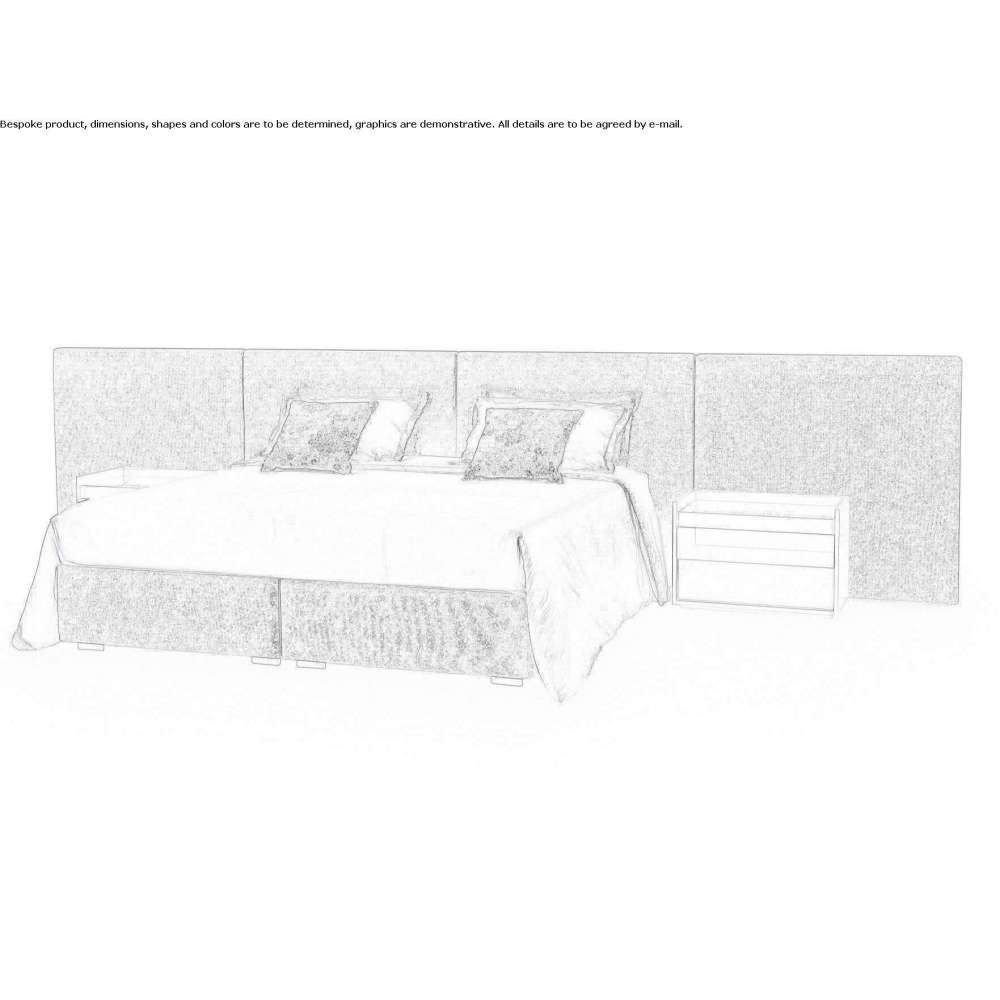 The headboard and bed base structure are made of plywood, padded with polyurethane foam. Upholstery in fabric or leather.