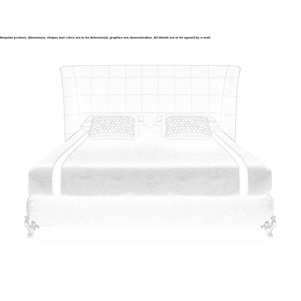 King is a bed with a solid wood and plywood structure. Quilted bed headboard. Cast brass legs. Padding made of polyurethane foam of various densities. The set includes a wooden strip. Available in standard, queen and king size. Bed set available to order.