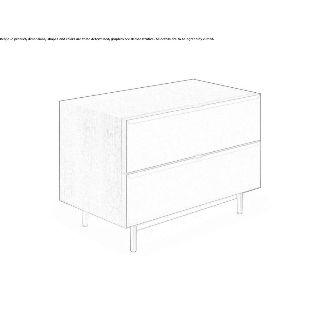 The Morrison container system moves away from the idea of mass production and fully embraces the "tailor-made" concept, adding new elements and finishes, creating a real collection, with countless solutions that extend its use to all rooms in the house. The Morrison base is available in three versions: on the floor or in heights of 12 and 25 cm. A new tobacco stained open pore oak finish has been added and joins the Moka. A beveled edge running around the perimeter defines the line of the doors and the front of the drawers, which, in addition to the leather-lined version, are also available in a glossy lacquered finish in the colors Sand, Celadon, Mud, Granite and Moka. A version with doors made entirely of Tobacco oak and a structure in a lacquered satin Mud finish is also available. The Morrison container system is available in three versions: with a base resting on a 12 cm base of lacquered, glossy tin-colored wood or with a base above the ground with a metal frame and tin-colored legs, 12 cm high and 25 cm high.