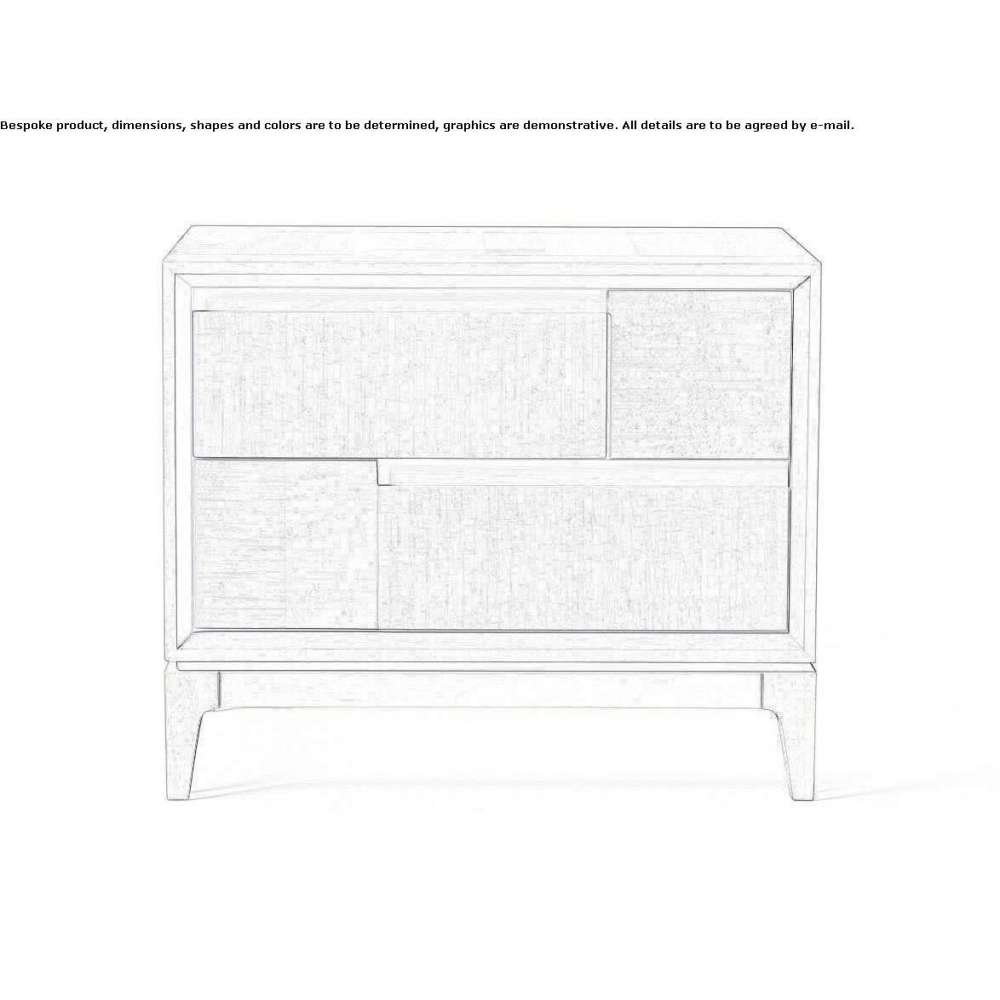 Bedside table made of veneer blockboard nutty. Two solid walnut drawers with a sawn wood effect.