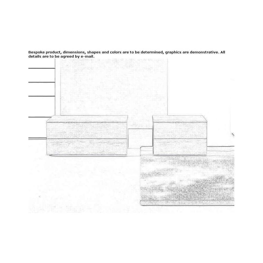 The series includes bedside tables and drawers available in various sizes and finishes.