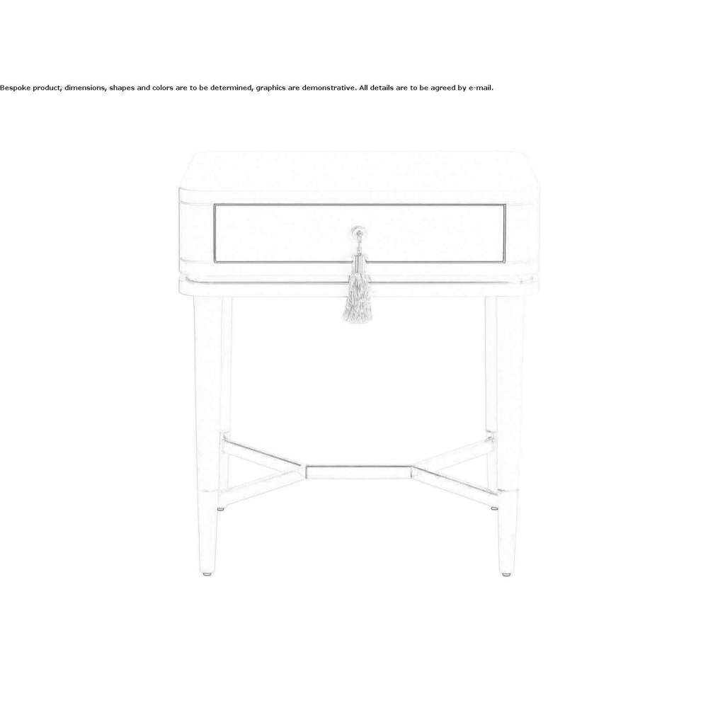 The Cris bedside table is a timeless piece of furniture for a bedroom in a romantic style, made of wood, but can be finished with any varnish. The fringe that enriches the drawer can be personalized in any color, and the metal details, in brass or stainless steel, make it unique and elegant.