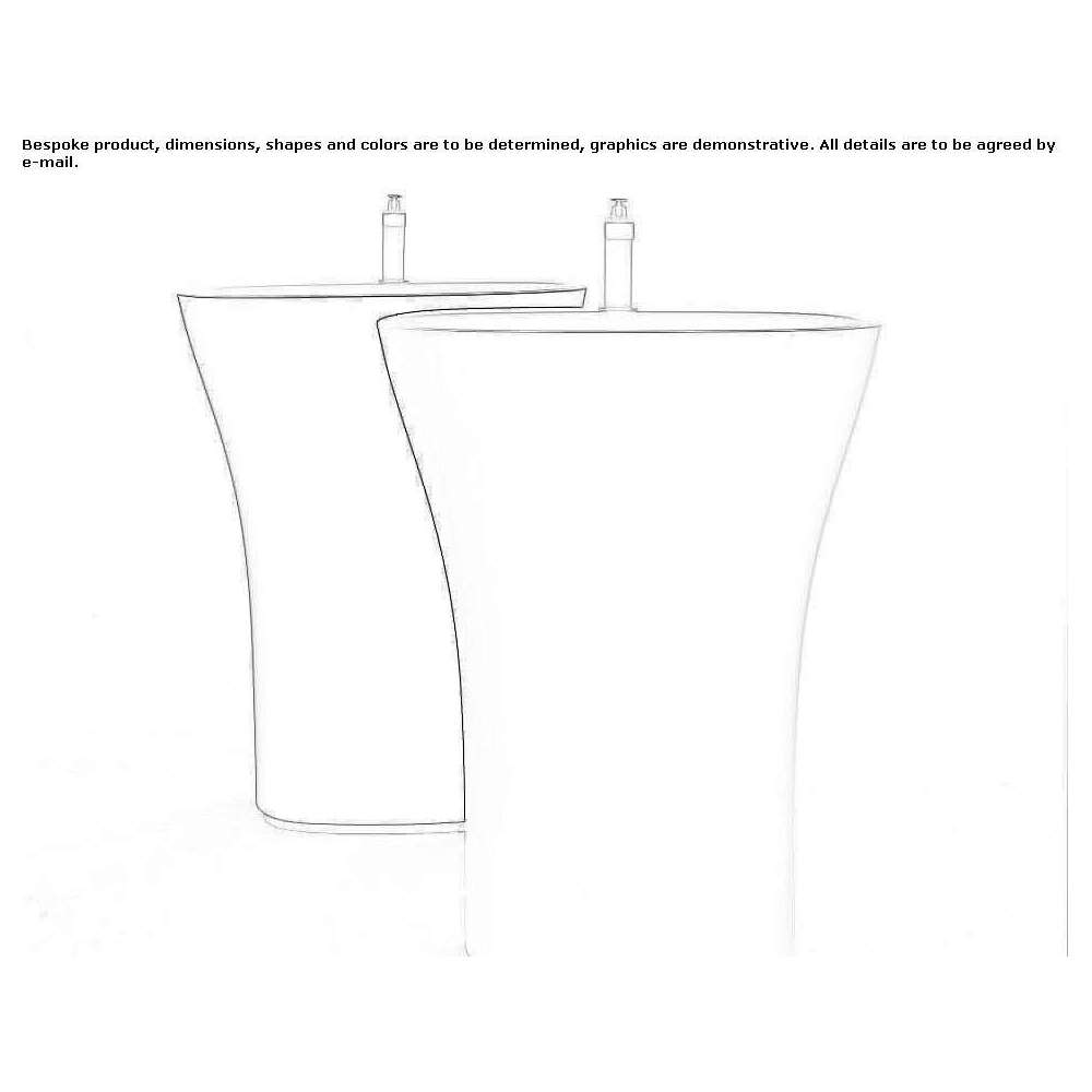Free-standing washbasin mounted to the floor, dimensions 66 x 49 cm, height 87 cm. Cristalplant base and washbasin with Cristalplant drain plug cover.