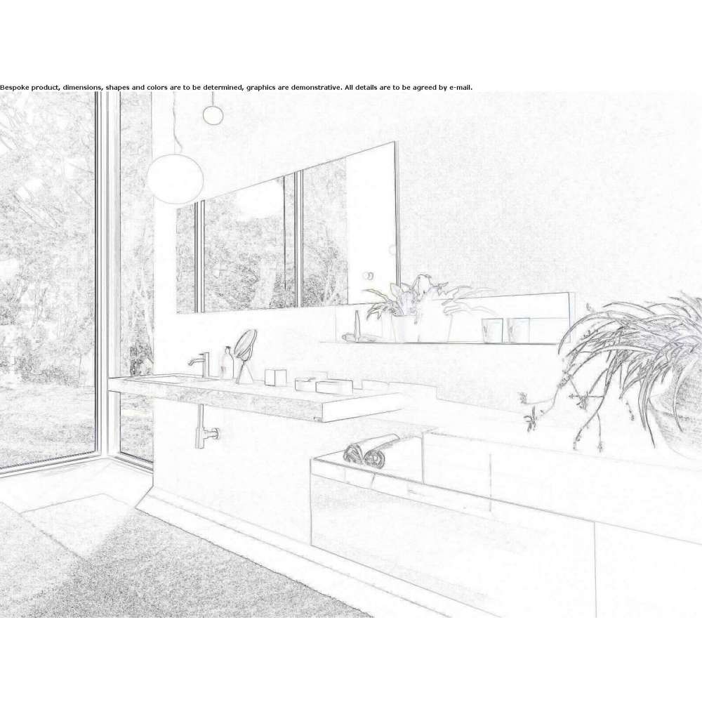 transparent window onto the water formed from an 8 cm thick shelf. The Depth washbasin plays with the feeling of empty, open emptiness thanks to its angled clear glass bottom. Wildwood, made of centuries-old oak with carved grain, fits perfectly into the space and creates an elegant surface. The material has been heat treated, making it highly resistant to liquids and providing renewed hold. Available with single or double sinks.