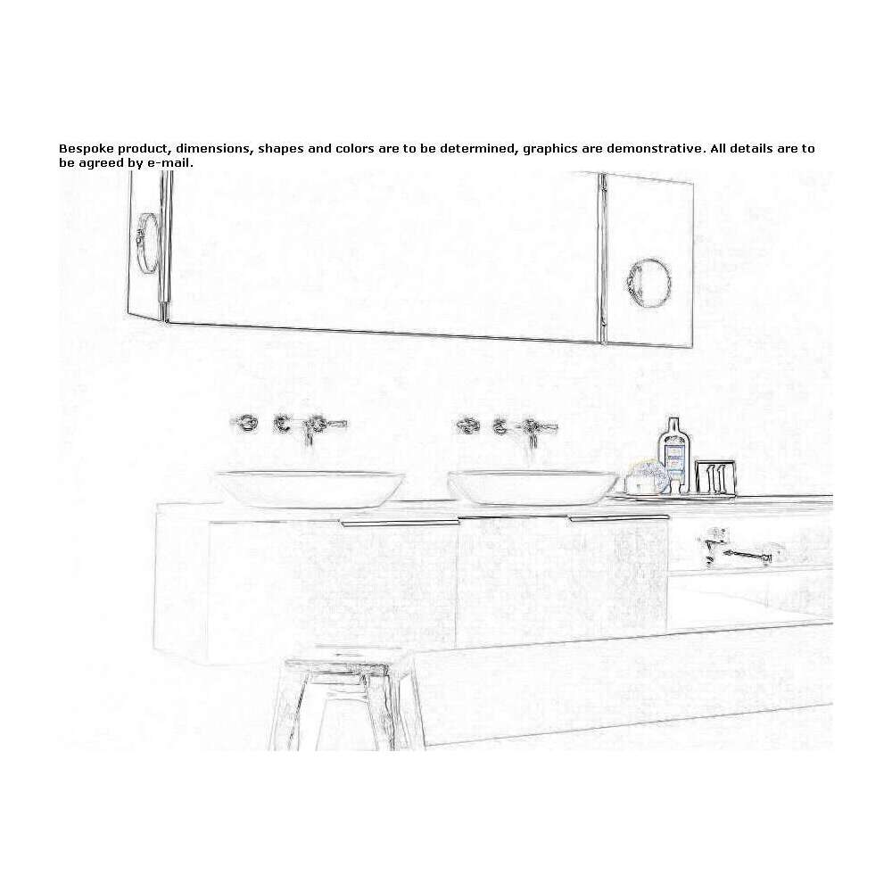 Oval semi-recessed washbasin made of white Cristalplant® biobased, without tap hole, with overflow hole. The Spoon washbasin made of white Cristalplant® biobased can create many possible compositions, for example in the version on the Flat XL countertop in oak color. The partially recessed version of the spoon forms one whole with tops of different thickness.