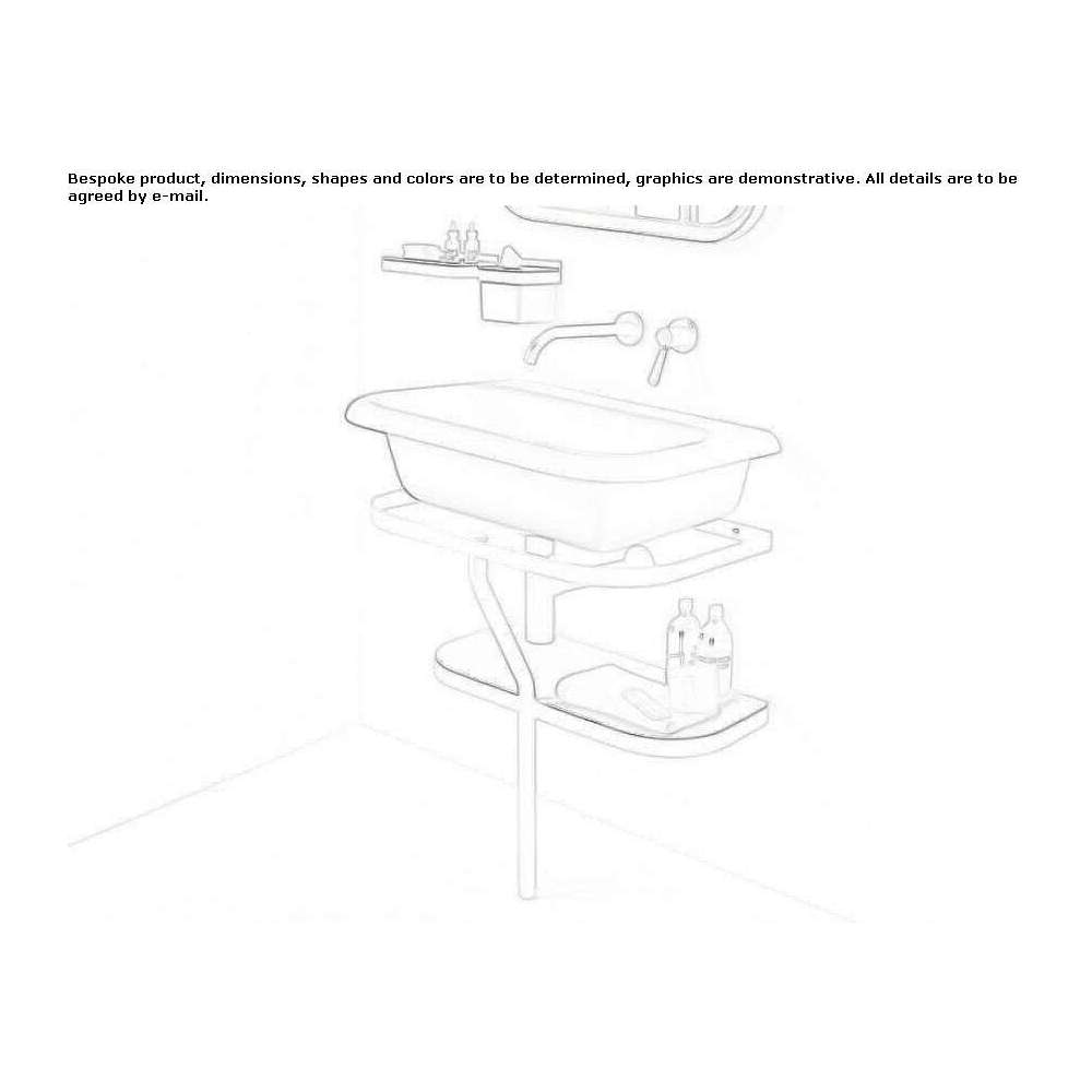 Washbasin in white or two-color Cristalplant® bio-based color ( outside in dark gray RAL7021 or light gray RAL 7044), without tap hole or with 1 or 3 tap holes. Without overflow, installation kit included. Also available with a structure in white (RAL9003), light gray (RAL 7044) or dark gray (RAL 7021), painted or brushed steel, with a towel rail and a white lacquered shelf; or on a stainless steel structure (while stocks last) with a shelf in the Cristalplant biobase and a towel rack. The washbasin and structure are also available in the color chosen by the customer (15% surcharge) for the washbasin included in the price for a two-color finish; for the structure in the photo with a white finish.