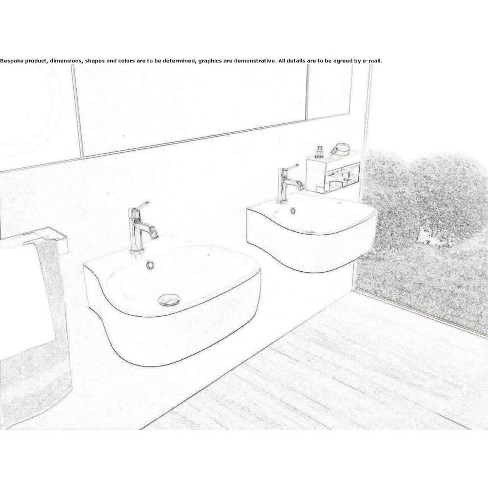 Shaped ceramic washbasin available in white or two colors (with a gray RAL7021 external surface). Supplied with one, three or no tap holes; with overflow hole, complete with polished stainless steel overflow flange and installation kit.