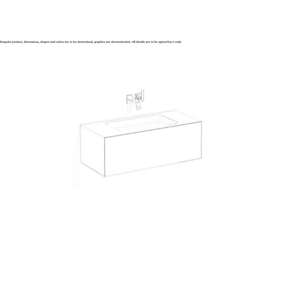 Rectangular washbasin, 1004 x 450 mm, height 350 mm, rectangular form without tap hole, without overflow, side white glass washbasin cover, handleless base cabinet with push to open function, full-depth drawer, furniture surface with a silk-matt finish, including drain, valve with round, white, glazed cap, space-saving siphon and installation kit